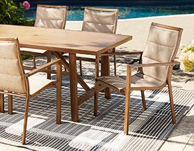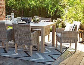 We offer patio tables, chairs, decor, and more.