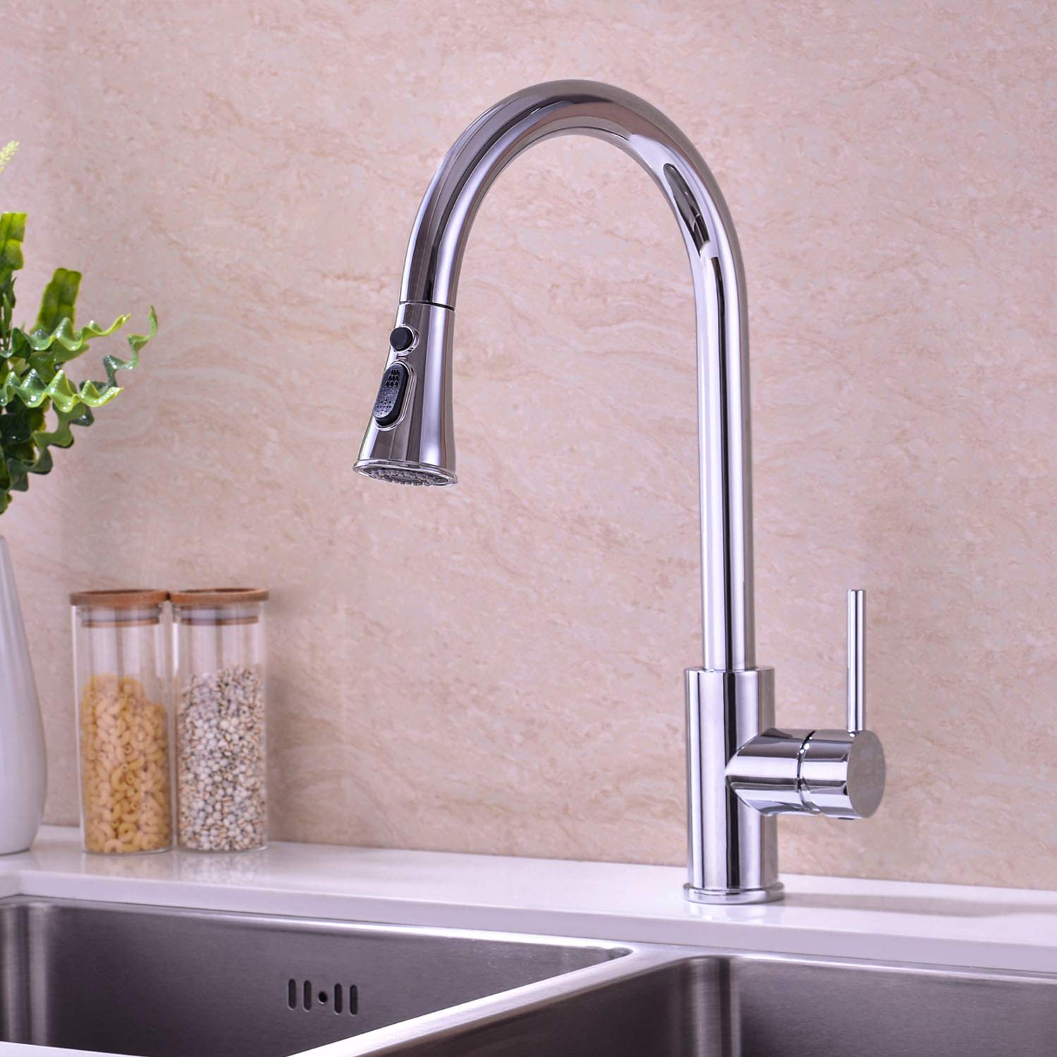 Single Handle Pull Down Spring Sprayer Kitchen Sink Faucet Modern Livingbasics from shopperplusca.s3.amazonaws.com Kitchen faucet, vinsic single handle kitchen sink faucet with pull down sprayer stainless steel kitchen faucets ceramic valve matte black. Kindred essential kitchen sink kit with faucet and strainers. The kitchen sink is the place where most meals start, and the faucet is a crucial tool to aide you in your meal preparation. Some very tall people find the extra depth of a farmhouse sink uncomfortable since it necessitates reaching over more than for an average sink. Find here online price details of companies selling sink faucet. Take a close look at the stylish sink faucet with amazing designs. These days, faucets come in so many designs that they can easily be. Choosing a kitchen sink & faucet.